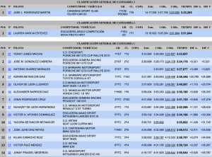 El apartado de turismos, el más numeroso, vio como el lanzaroteño Yeray Lemes, en su segunda carrera con su nuevo Porsche 997 GT3, se llevaba la victoria, seguido de unidades similares, como la del palmero residente en La Gomera José Manuel González, a sólo 0.321, siendo tercero su paisano Toñín Suárez, a 3,499.
