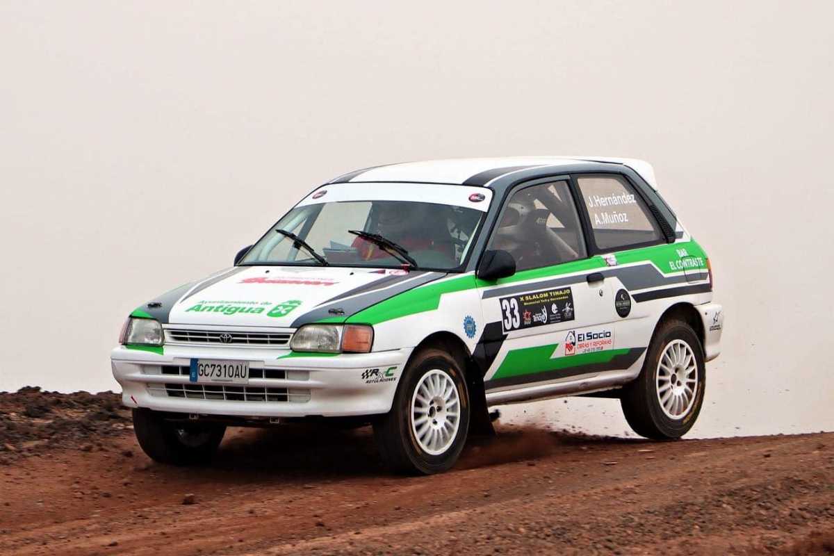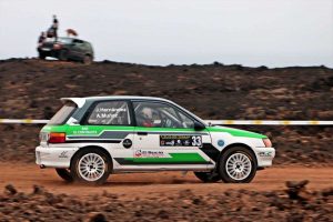 El copiloto lanzaroteño Adrià Muñoz debutó el pasado sábado en la tierra en el Slalom Isla de Lanzarote – Tinajo 2022 junto al majorero Jonathan Hernández en su debut como piloto en un Toyota Starlet.