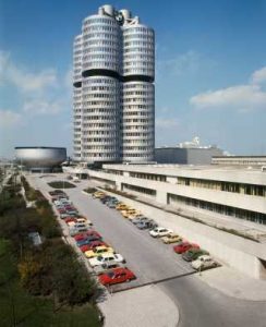 La sede central del Grupo BMW, con su construcción suspendida, es uno de los edificios de ingeniería más innovadores del período de posguerra. En el proceso, los pisos superiores primero se fabricaron en el suelo, y luego se trasladaron hacia arriba por medios hidráulicos en el enorme «eje de la torre» de hormigón armado y se completaron por partes. La construcción de la sede del grupo BMW concluyó en agosto de 1972. Diseñado por el arquitecto austríaco Karl Schwanzer, el edificio administrativo se ha convertido en un ícono y atracción mundial para Múnich y la empresa. El poder innovador del diseño de Schwanzer representa al grupo BMW entonces como ahora, lo que convierte a la sede de la empresa en un faro de movilidad sostenible para el mañana. No solo es un símbolo del éxito económico, sino que también representa el intercambio internacional, la paz y el interculturalismo. Hoy en día, la «comunicación de la construcción» implementada por Schwanzer señala el camino hacia una nueva era de electrificación, digitalización y circularidad.