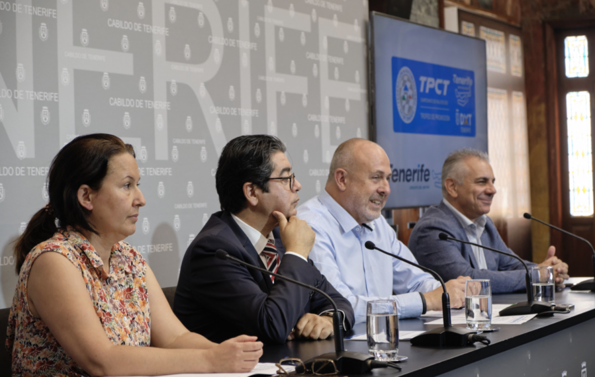 El presidente del Cabildo, Pedro Martín y el vicepresidente primero, Enrique Arriaga, junto con la consejera insular de Deportes, Concepción Rivero, y el presidente de la FIASCT, Francisco Negrín, explicaron hoy los detalles de este patrocinio, que cuenta con una aportación del Cabildo de 15.000 euros.