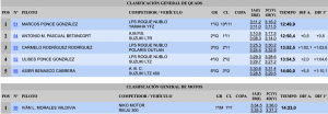 Ambos lograron superar en 7.5 a Gustavo Sosa y Rubén Pérez (Skoda Fabia R5), segundos, siendo terceros Aníbal Hernández y Airám Pérez (Mitsubishi Lancer Evo IX), a 19.4 de la cabeza y superando en sólo 0.6 a Javier Sosa y Javier Fraguiel, con otro Evo IX.