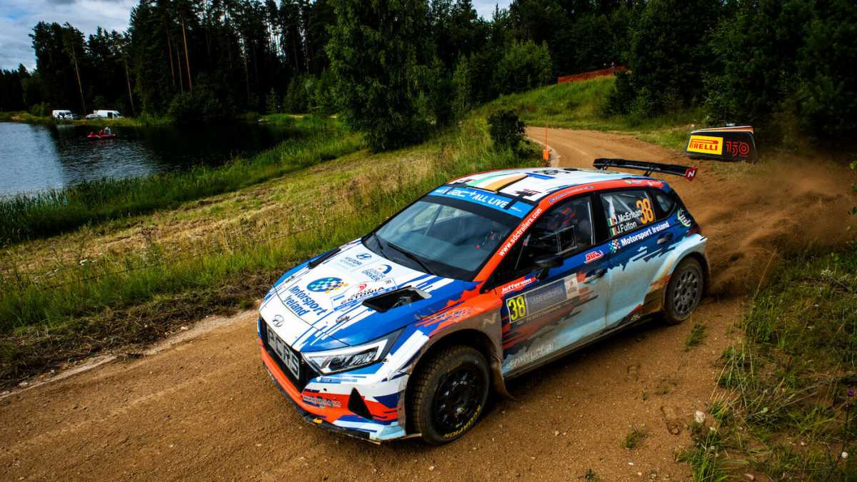 McErlean pudo continuar la prueba -sin el parabrisas delantero- y terminó tercero en la general de la categoría WRC2 Junior, aunque su Hyundai mostraba su parte justa de cicatrices de batalla al final.