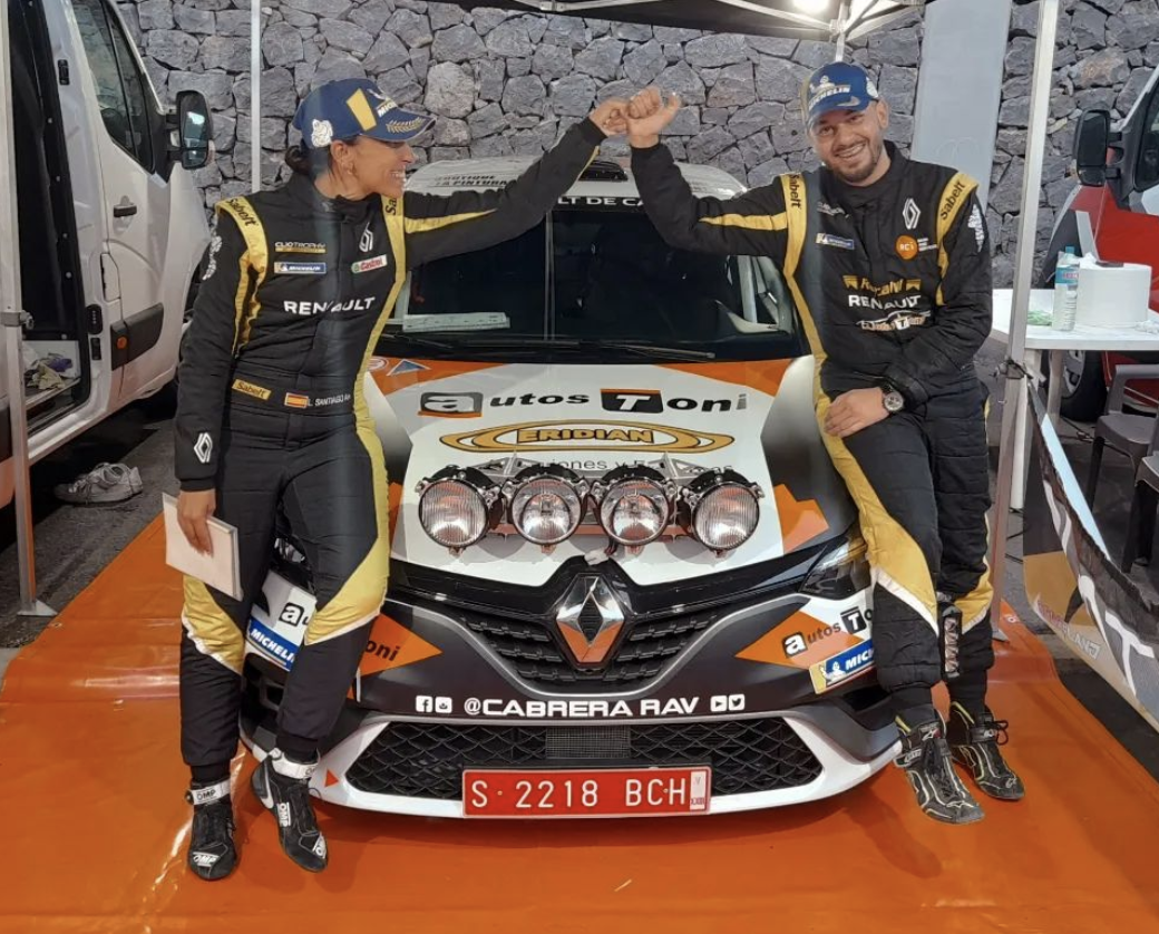 La grancanaria Lucía Santiago se sentño a la derecha de su paisano Iván Cabrera en su Renault Clio Rally5 en el pasado Rally Ciudad de La Laguna, pero una salida de carretera les impidió finalizar el primer tramo.