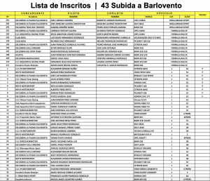 Publicamos la lista de Inscritos de la 43ª Subida a Barlovento, prueba que se disputará este próximo sábado en la isla de La Palma.