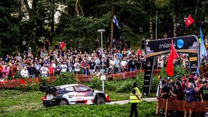 Neuville, actualmente segundo en la clasificación, demostró su compromiso al pilotar su i20 N de propulsión híbrida por el circuito de Harju, de superficie mixta, ante una multitud de personas cerca del centro de la ciudad anfitriona, Jyväskylä.