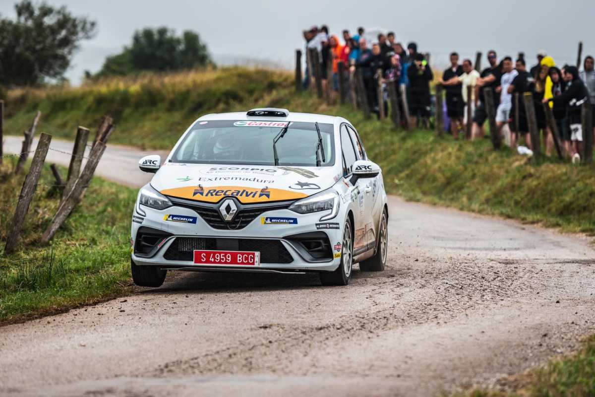 El piloto extremeño Miguel Grande y el copiloto lanzaroteño Ariday Bonilla corrieron en Sarón con su Renault Clio Rally5, pero una salida de carretera lo tiró todo al traste.