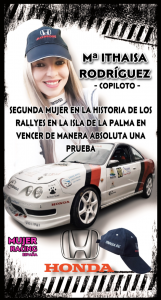 Mujer Racing España (@mujerracing) nos recuerda que María Ithaysa Rodríguez es la segunda mujer en la historia del automovilismo palmero en lograr una victoria absoluta cómo copiloto.
