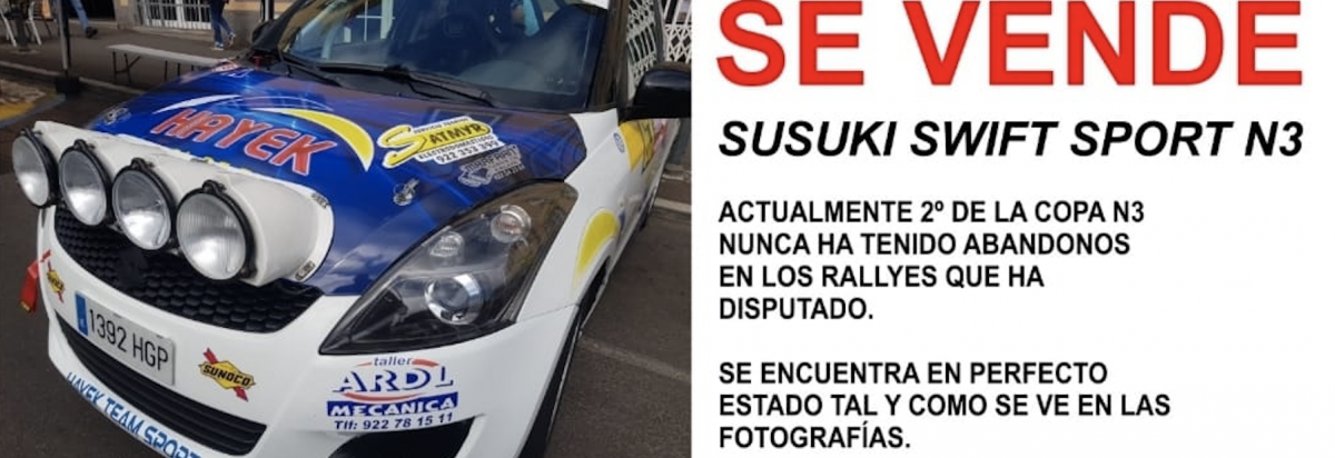 El tinerfeño José Miguel Hayek ha puesto a la venta el Suzuki Swift Sport con el que ha competido con su paisano Mateo Jesús Pérez.