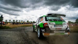 La estrella de M-Sport Ford, Jari Huttunen, abandonó con su Fiesta durante la noche por problemas de motor, dejando a Chris Ingram en quinta posición con otro Fabia.