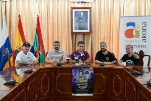 El salón de plenos del ayuntamiento de Arona acogió la presentación de la última parada del periplo canario con la presencia de autoridades políticas y algunos de los grandes protagonistas del evento de las dos y cuatro ruedas.