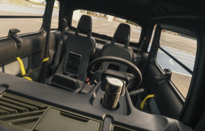 Con ese mismo espíritu, tres flechas blancas de dirección, emplazadas en una secuencia descendente en el interior del panel de la puerta, muestran cómo mover el tirador para abrir la puerta. Y una pegatina en las solapas de las ventanillas marca las coordenadas GPS de la longitud del centro técnico del Grupo Stellantis, el ADN (Automotive Design Network) que se encuentra en Vélizy. Además, dos pequeños detalles estéticos subrayan que My Ami Tonic es un objeto de movilidad 100% eléctrico: un adhesivo “+”en el tirador de la puerta del conductor y un “-“ en el del pasajero simbolizan los polos de una batería.