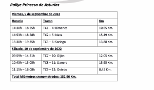 Como viene siendo habitual, la prueba se disputará en dos etapas, arrancando con el tramo de pruebas y calificación a primera hora del viernes, para dar paso, tras el mediodía, a tres especiales a doble pasada. Para el sábado quedarán otros tres tramos a doble pasada para completar la docena de tramos que dirimirán al vencedor.