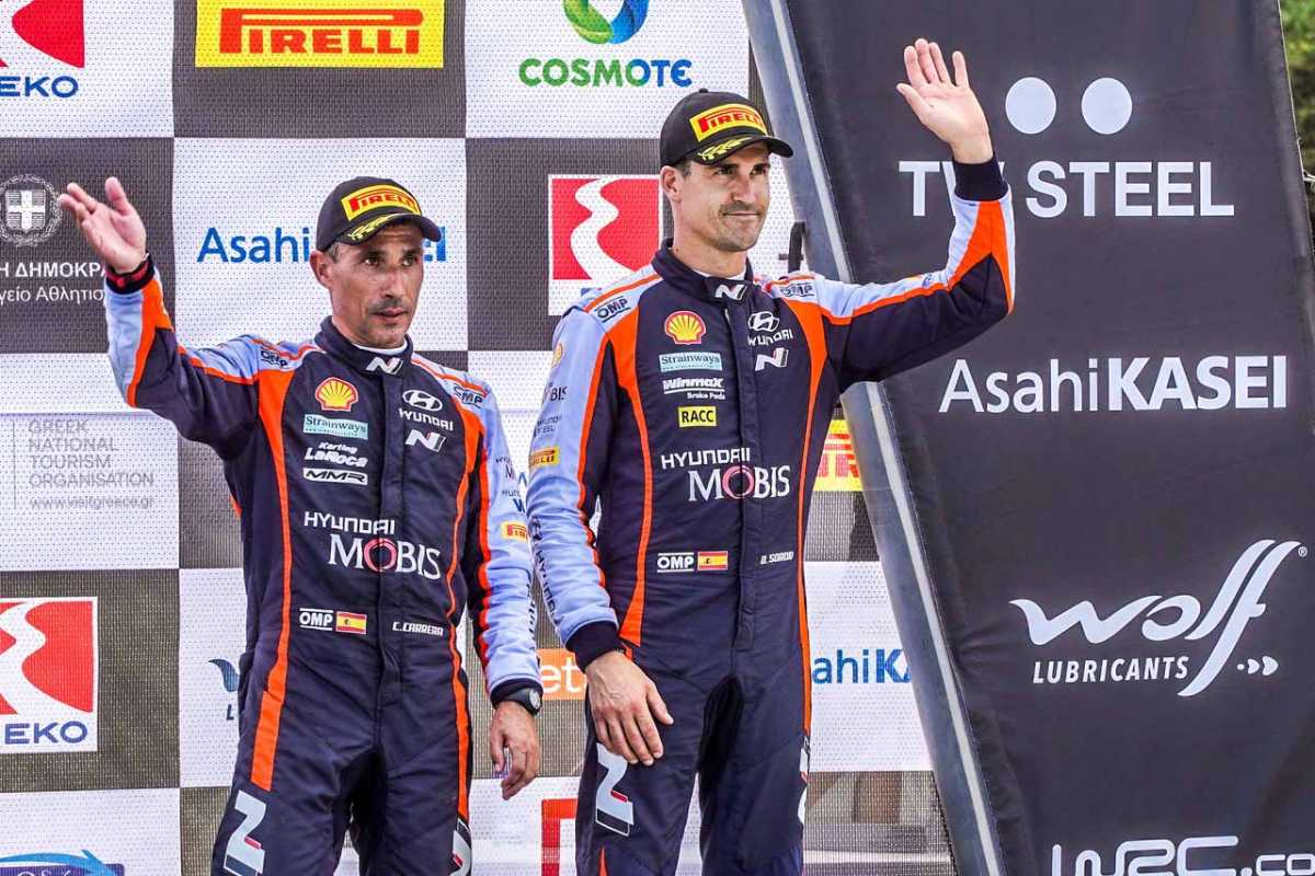 Se trata ya del quinto podio consecutivo para la pareja española del WRC (World Rally Championship), que en esta oportunidad ha vuelto a demostrar su potencial y fiabilidad sobre los exigentes tramos de la prueba helena, donde Dani Sordo y Cándido Carrera han posibilitado además el triplete histórico alcanzado por Hyundai Motorsport.