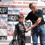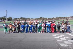 Se dio comienzo por la mañana tras el Warm Up con la presentación de pilotos ante todo la prensa, fotógrafos y aficionados. Se trataba de la última prueba del Campeonato Provincial de Las Palmas y penúltima del Campeonato de Canarias, comenzando con la categoría Promoción de la Escuela, que tantos éxitos podrían dar en un futuro esos niños en nuestro deporte. Dos nuevos contrincantes, los hermanos Santana, Himar y Jaime, que si bien se les notó muy buenas maneras, si se les notó faltos de entrenamientos, sobre todo en el Circuito grande con sus casi 1000 metros y aguantar las 10 vueltas de cada carrera. Pero es tan sólo sus comienzos. Al final hubo Trofeos para todos ellos, siendo Yeiden González el primer clasificado y vencedor en sus dos carreras, mientras que Gabriel Santana acabó segundo y Diego Daniel tercero, Himar Santana hacía el cuarto puesto para cerrar con un quinto su hermano Jaime.
