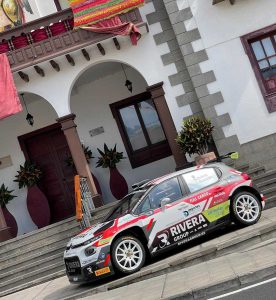 El palmero Miguel Suárez mostró a la afición palmera su Citroën C3 Rally2 en el pueblo de Tazacorte en su La Palma natal, donde el próximo fin de semana correrá el Rally Isla Bonita, cita del Campeonato de Canarias de Rallys.