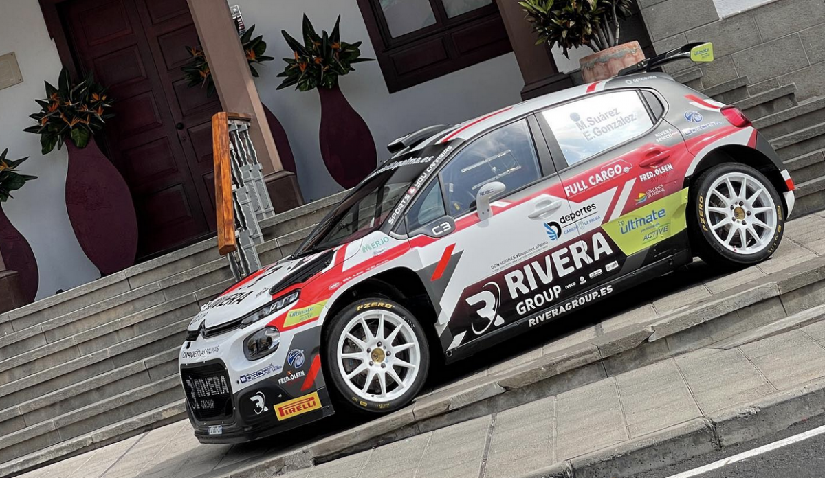 El palmero Miguel Suárez mostró a la afición palmera su Citroën C3 Rally2 en el pueblo de Tazacorte en su La Palma natal, donde el próximo fin de semana correrá el Rally Isla Bonita, cita del Campeonato de Canarias de Rallys.