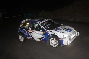 Fran Santana – Pedro Quesada tenían un buen inicio en el rally, marcando un buen registro en los dos primeros tramos, aunque un problema al perder valvulina la caja de cambios le retrasaban un poco.