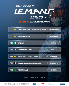 Frédé ricLequien, CEO de Le Mans Endurance Management (LMEM): «Estamos muy contentos de anunciar este emocionante calendario 2023 para la European Le Mans Series, que incluye un nuevo circuito y un formato de carrera nocturna para el ELMS en Motorland Aragón para presentar un nuevo desafío para nuestros equipos y pilotos. El nuevo calendario es una gran mezcla de los mejores circuitos europeos».
