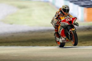 Marc Márquez ha completado 26 vueltas en un entrenamiento disputado totalmente en condiciones de seco. Las cuatro gotas que han caído a mitad de sesión no han impedido que el piloto del equipo Repsol Honda haya ido rebajando sus tiempos a lo largo de la sesión. Finalmente, Márquez ha acabado la jornada siendo el sexto piloto más rápido, con un mejor registro de 1 minuto, 44 segundos y 656 milésimas, a poco más de 1 décima del mejor tiempo del día.