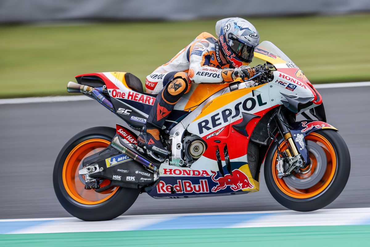 Marc Márquez ha completado 26 vueltas en un entrenamiento disputado totalmente en condiciones de seco. Las cuatro gotas que han caído a mitad de sesión no han impedido que el piloto del equipo Repsol Honda haya ido rebajando sus tiempos a lo largo de la sesión. Finalmente, Márquez ha acabado la jornada siendo el sexto piloto más rápido, con un mejor registro de 1 minuto, 44 segundos y 656 milésimas, a poco más de 1 décima del mejor tiempo del día.