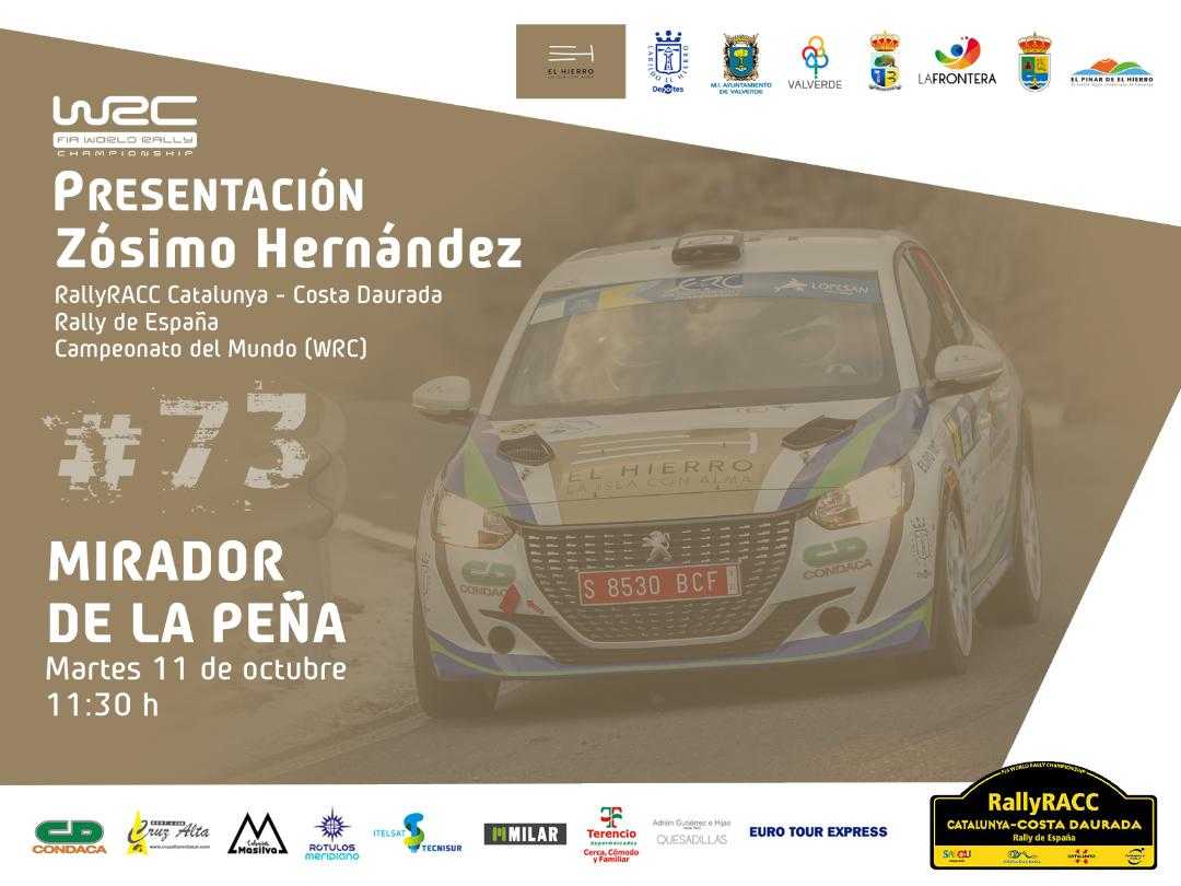 El piloto herreño Zósimo Hernández ha confirmado que estará presente en el próximo RallyRACC Catalunya – Costa Daurada – Rally de España (WRC) a los mandos de un Peugeot 208 Rally4, por lo que presentará este proyecto mundialista el Martes 11 de octubre, a las 11:30 horas.