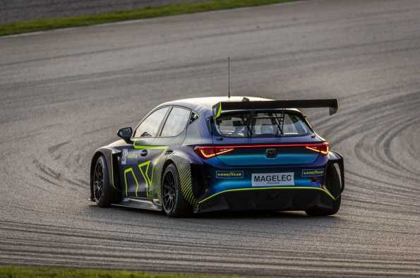El resultado, una vez integrada la batería de 65’6 kW y el resto de elementos comunes (motor, inversor y caja de cambios), fue un turismo de tracción trasera de 500 kW (680 CV) de potencia máxima y 960 Nm de par motor, capaz de acelerar de 0 a 100 km/h en solo 3,2 segundos. El CUPRA e-Racer recarga en solo 50 minutos al 90%, con un cargador de 100 kWh, la energía necesaria para disputar una carrera.