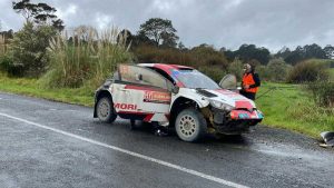 Elfyn Evans se ha visto obligado a retirarse del Repco Rallye de Nueva Zelanda después de que se descubriera que su Toyota GR Yaris había sufrido daños en la jaula antivuelco durante una salida de pista el sábado por la mañana.