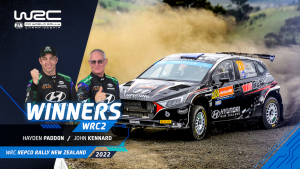 El favorito de los aficionados lideró de principio a fin, añadiendo otras tres victorias de tramo el domingo para sumarse a las diez que ya había cosechado hasta el momento, terminando 2min 33,1seg. por delante de Kajetan Kajetanowicz en su Škoda Fabia Evo Rally2. El piloto polaco ha sumado 20 puntos en su aventura neozelandesa para situarse segundo en la clasificación general del Campeonato WRC2 por detrás de Andreas Mikkelsen.