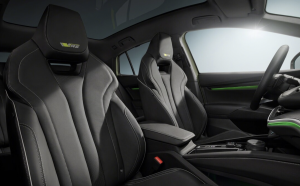 El ŠKODA ENYAQ Coupé RS iV es el modelo deportivo de alta gama de la marca. Presenta un paragolpes delantero deportivo específico, así como faldones laterales del color de la carrocería, una gran cantidad de detalles de diseño en negro brillante y una franja reflectante roja que se extiende a lo largo de la parte trasera, típica de los modelos RS. Además puede equiparse con llantas de aleación de 20 o 21 pulgadas y en su interior cuenta con asientos deportivos de cuero y el volante deportivo en cuero perforado y diseño específico RS.
