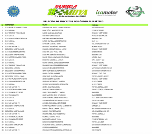 RELACIÓN DE INSCRITOS ÓRDEN ALFABÉTICO SUBIDA VILLA DE MOYA 2022