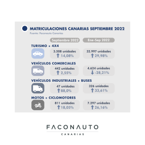 El mercado total de turismos y 4×4 crece ligeramente un 14% el pasado mes de septiembre con respecto al mismo mes de 2021. La patronal entiende que el inicio de la temporada alta de turismo para Canarias, está detrás de este repunte de las ventas en el sector.