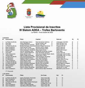 Publicamos la relación provisional de inscritos del III Slalom ADEA – Trofeo Barlovento.