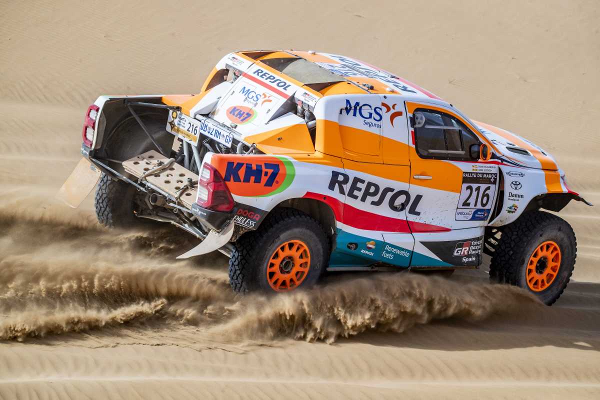 -El líder del Repsol Toyota Rally Team se codea con los referentes de la especialidad en su estreno al volante del Toyota Hilux T1+ y termina el Rally de Marruecos en una extraordinaria séptima posición.
