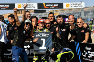 -Motorland Aragón ha celebrado la penúltima cita del Finetwok FIM JuniorGP World Championship con victorias para el joven holandés Collin Veijer en JuniorGP, Lukas Tulovic en las dos carreras de Moto2 y Guido Pini y Joel Esteban en la Hawkers European Talent Cup.