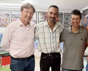 Marcos es un aficionado al automovilismo que desde hace tiempo quería fotografiarse con los hermanos Ponce. Por diferentes circunstancias no lo había podido hacer realidad, pero gracias a Miguel Felipe, su mujer y la generosidad de los Ponce tuvo la foto que tanto deseaba.