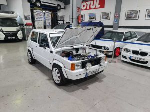 Una restauración total que se empezó a principio de año, cuando compramos este Seat Panda en Tenerife. Se le ha montado un motor de moto SUZUKI GSX, frenos Brembo de 4 pistones, puente trasero de Renault 5 GT Turbo, Suspensión bilstein b8 tirantes y Orquillas