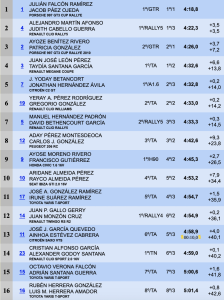 Cuartos son Juan José León-Taydía Santana con el Renault Megane Coupé, seguidos del lanzaroteño José Yoday Betancort y el majorero Jonathan Hernández, quintos con el Citroën C2.