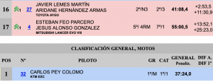 A partir de aquí Sosa y González supieron jugar con su ventaja para acabar ganado con 15.1 sobre los ‘javieres’, siendo terceros Javier Fránquiz y el candidato a la presidencia de la Fereación Canarias de Automovilismo, el grancanario José Ángel Batista, en el Mitsubishi Mirage Proto.