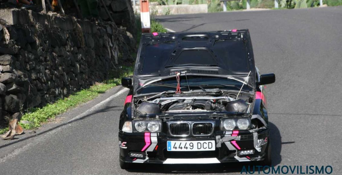 Los grancanarios Acaimo Martín y Juan Santana afrontaban las curvas finales de la segunda pasada por la especial Cardonal – Bañaderos, de 6,1 kilómetros, el segundo tramo de la jornada del sábado del Rallysprint Ciudad de Arucas, cuando, de manera inesperada, el capó del BMW 325I E36 se levantó y les tapó toda visión.