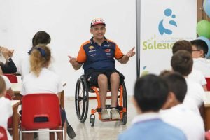 «Empezamos a montar un proyecto en torno al Dakar y a la figura de Isidre Esteve, porque él era la figura que aportaba valores como la determinación, de no rendirse, de la fuerza de la superación… Ha sido muy emocionante su visita. Ha habido un momento en que los chicos y los profesores tenían los ojos vidriosos. No se les va a olvidar nunca haber conocido a una persona a la que admiran, que han seguido y seguimos«, afirma Arantxa Toledo, coordinadora de comunicación y marketing del centro.