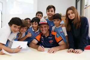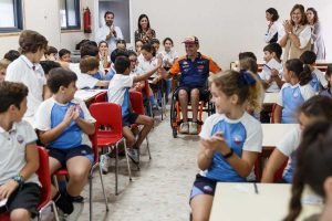 Para los escolares, encontrarse con Esteve ha sido una sorpresa enorme cargada de emoción e ilusión, después de haber seguido sus andanzas en competición en el último año y medio. Ya en el aula, el de Oliana les ha respondido a todas las preguntas que le han hecho, muchas de ellas relacionadas con su capacidad de superación y sobre cómo es su día a día en la competición. Antes de finalizar el encuentro, no han faltado la firma de autógrafos, el intercambio de regalos –Esteve les obsequió con una camiseta firmada– y la foto de grupo, momento en el que ha habido ocasión para las bromas cuando le han preguntado de equipo era, a lo que ha contestado: «Soy del Barça, pero soy un fan de Joaquín«, en alusión al jugador del Betis.
