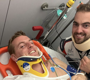 Han sido unas horas bastante duras para mi, pero estamos bien! @axel_cj con algunos dolores y yo con varias vertebras rotas.