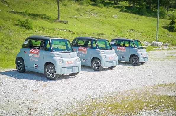 Tres Citroën Ami componen esta pequeña flota de cero emisiones permitiendo así a seis personas al mismo tiempo explorar uno de los más fascinantes territorios del Belpaese, en el entorno del Hotel Bladen, siguiendo un recorrido que incluye paradas estratégicas para la degustación de productos típicos de la zona en las que, si es necesario, se ofrece la posibilidad de recargar gratuitamente el Ami.