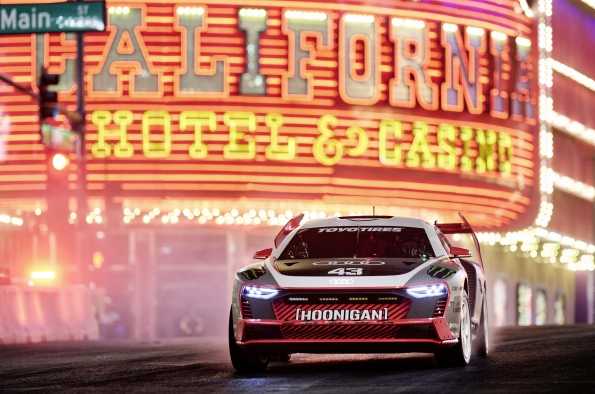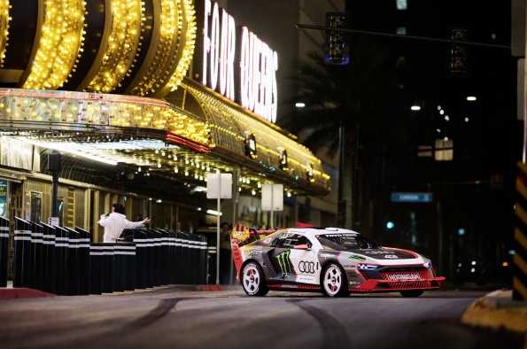 Un derrape alrededor de la famosa Torre Eiffel, un espectacular salto desde la plataforma de estacionamiento de un hotel o unos “donuts” frente a la leyenda de Le Mans Tom Kristensen: Ken Block, el Audi S1 Hoonitron y otros modelos de la colección de Audi Tradition causaron sensación durante el rodaje nocturno en Las Vegas. La estrella estadounidense, a bordo del Audi S1 e-tron quattro Hoonitron, electrizó el paraíso del juego en el desierto de Nevada durante varios días. Ahora, Ken Block ha dado a conocer su nuevo vídeo.