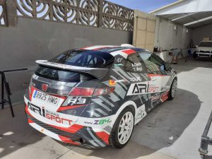 El piloto grancanario Acorán Navarro, rotulista profesional, presentó la rotulación del Honda Civic Type R de su paisano Ari Ojeda, con el que correrá en el Rally de Maspalomas.