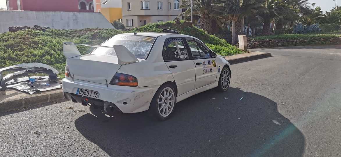 El Rally de Maspalomas era testigo del debut de Jesús Rodríguez y Leonardo Perera con su nuevo Mitsubishi Lancer Evo IX, pero la pérdida de frenos le obligó a frena con la valla, dejándolos fuera de carrera.