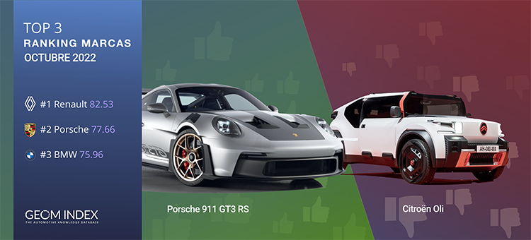 Porsche vuelve a colocar a uno de sus modelos, el 911 GT3 RS, como el modelo más destacado, frente al Citroën Oli que se sitúa a la cola del informe GEOM INDEX.