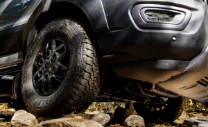 Altura de manejo aumentada en 3.5 pulgadas, una vía más ancha de 2.75 pulgadas, llantas para todo terreno Goodyear Wrangler Workhorse de 30.5 pulgadas y ruedas de aleación negras de 16 pulgadas