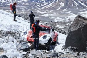 Allí ha tenido lugar la primera prueba del equipo y de los coches. Y, en ese terreno, un Porsche 911 se ha convertido en uno de los pocos vehículos de cualquier tipo en haber alcanzado una altitud tan extrema.