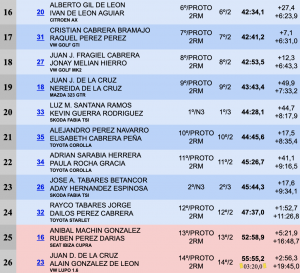 Las victorias de tramos estuvo muy repartida, con Juan Carlos Quintana – Yeray Mujica ganando tres, Daniel Guerra – Gabriel Espino dos, y con una Yeray Lemes – Rogelio Peñate, Esteban Feo – Jesús Alonso y Gustavo Sosa – Eduardo González.
